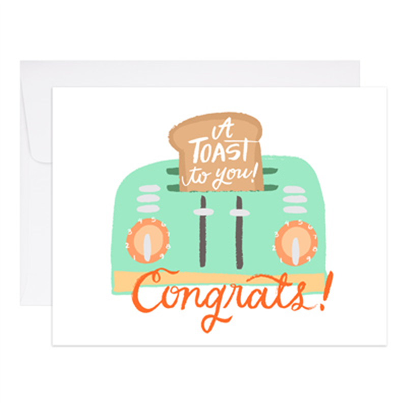 A Toast For You is hand illustrated digitally printed gold foil pressed printed with lots of care on natural white cover stock Blank interior matching envelope Individually packaged A2 4 25 x 5 5