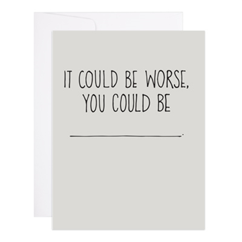 Could Be Worse is hand illustrated and digitally printed with lots of care on natural white cover stock Blank interior matching envelope Individually packaged A2 4 25 x 5 5