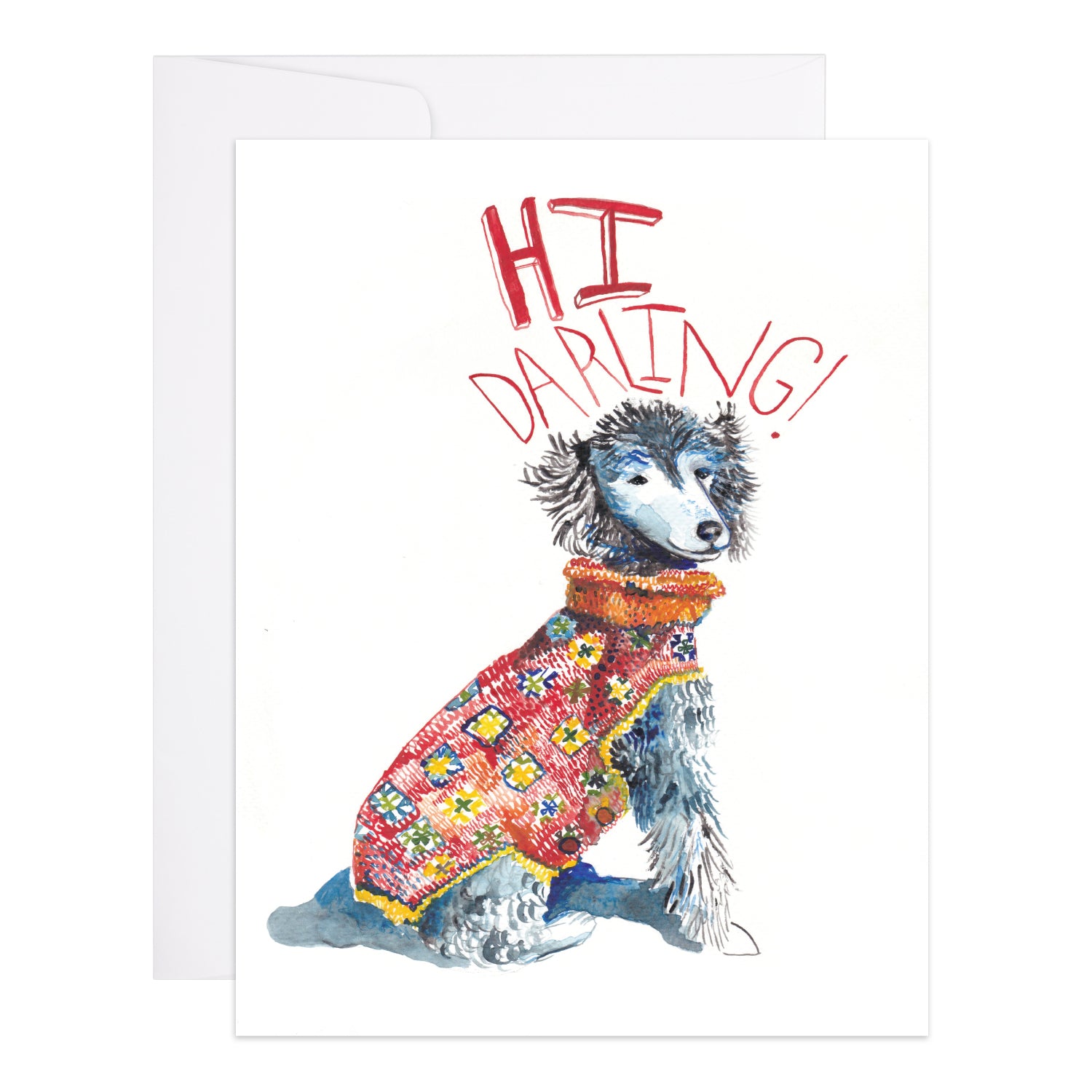 Hi Darling is hand illustrated and letterpress printed with lots of care on natural white cover stock Blank interior matching envelope Individually packaged A2 4 25 x 5 5