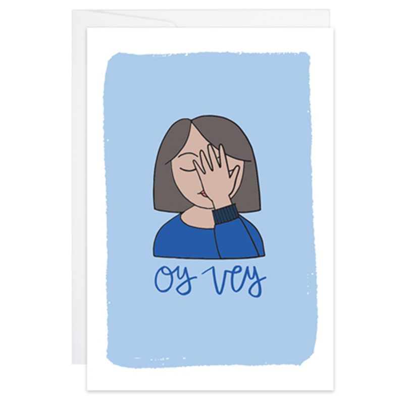 Palm Face Oy Vey is hand illustrated and digitally printed with lots of care on natural white cover stock Blank interior matching envelope Individually packaged Enclosure Card 3 625 x 2 5