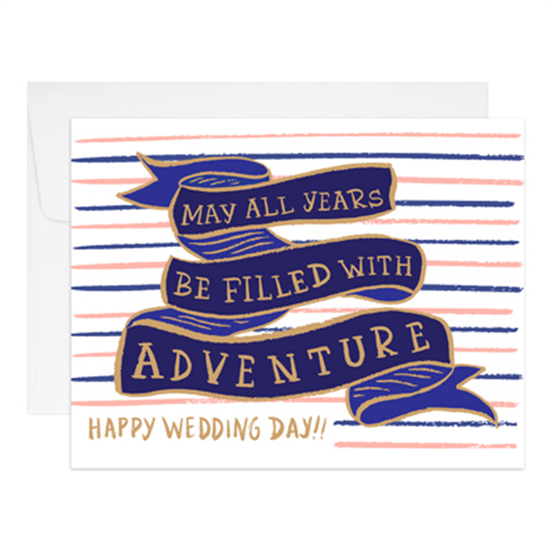 Years of Adventure is hand illustrated digitally printed gold foil pressed printed with lots of care on natural white cover stock Blank interior matching envelope Individually packaged A2 4 25 x 5 5